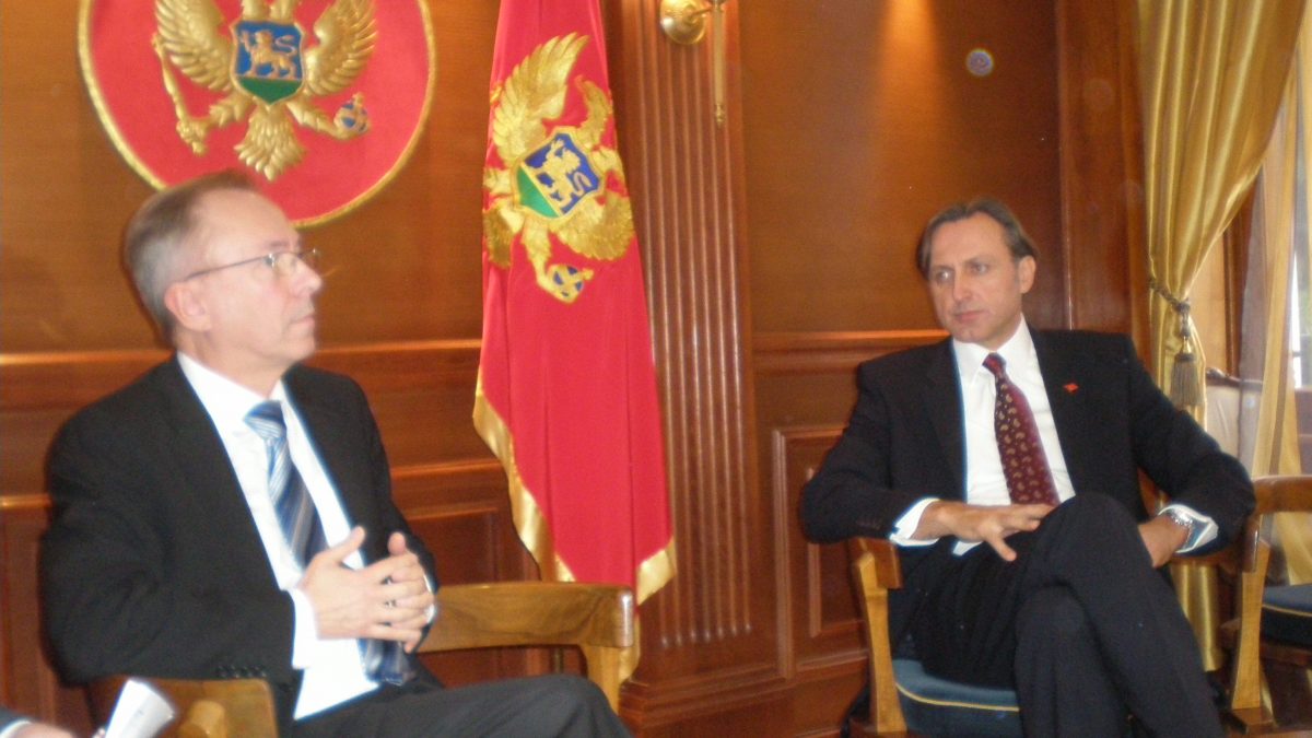 Två talmän, talmannen i Mentenegros parlament och vice talman i riksdagen Jan Björkman (S).